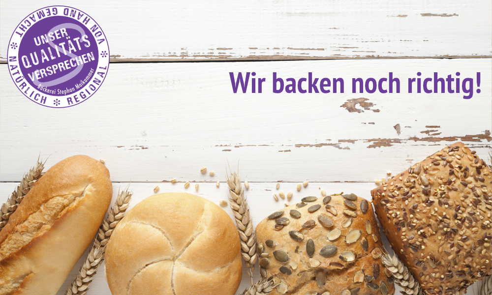 In all unseren Filialen können Sie neben einem saisonal wechselnden Brot-, Brötchen- und Konditoreisortiment täglich frisches Baguette, Kastenweißbrot, Weizenmischbrot, Gassenhauerbrot, Roggenmischbrot (auch mit Kümmel) oder Landbrot erwarten.